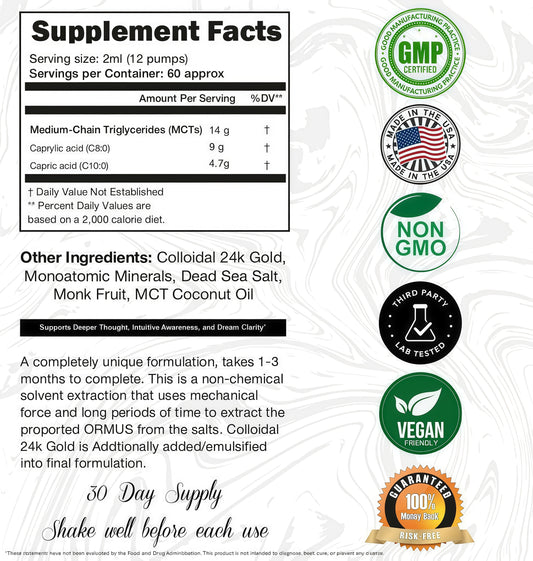 I Am Joy Co. Ormus Gold Oil Monoatomic | Supports Deeper Thought, Intuitive Awareness & Dream Clarity | Rich with Minerals, Platinum, Iridium | Non-Chemical Extraction | 4oz